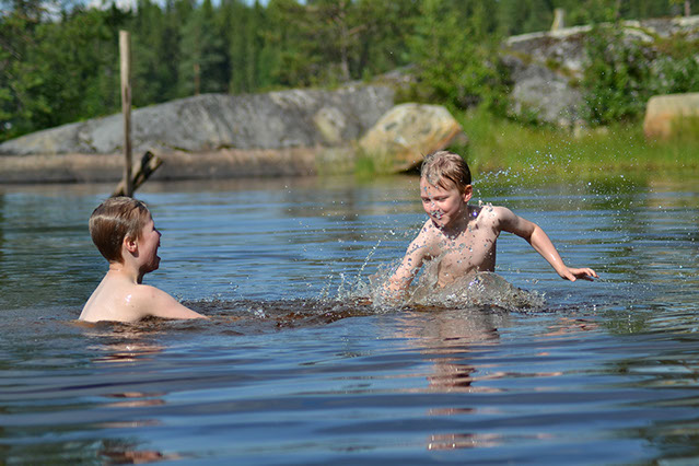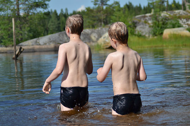 Lapsikuvaus miljöössä, veljekset vesileikeissä 2014